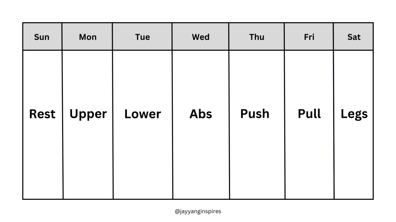 Here’s the workout routine I’m following (Sundays and Wednesdays are also running days):